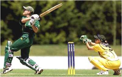 Australia vs South AfricaAnina Burger in action whilst scoring 44 as wicketkeeper Julia Price watches on during the Australia v South Africa match in the 2000 CricInfo Womens Cricket World Cup match played at BIL Oval, Lincoln, New Zealand. Australia defeated South Africa by 9 wickets.Scott Barbour/ALLSPORT |