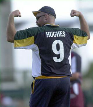 Guess who's back??Merv Hughes, former Australian fast bowler making a comeback!! Not in your dreams. Merv was spotted showing his muscles to the crowd during the Ian Healy Testimonial Cricket match played between Ian Healy's Australian Eleven and the Rest of the World Eleven played at the Gabba in Brisbane, Australia.Darren England/ALLSPORT |