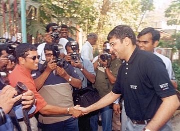 A collector's picture. The meeting of two great minds of mordern sports. Sachin Tendulkar and World chess champion Vishwanathan Anand met in Mumbai.