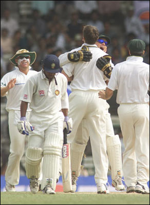 Test cricket at its finestS S Das played an innings that the country will be proud of -- full of determination and pluck. But nobody must have expected him to get out to the first ball of the morning. That is exactly why the Australians are rejoicing, as the lad walks back to the pavilion.