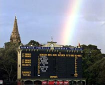 Postscript: The electronic scoreboard at the S.C.G is fantastic. Rather than just showing replays, it actually telecasts the entire game complete with facts and figures and analyses such as wagon-wheels, charts depicting what percentage of each bowler's balls pitched where, etc. And all this for one of their domestic games! With such facilities at the ground as well as the atmosphere of a crowd, who would want to stay at home to watch the game on TV any more?