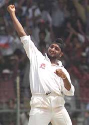 Check the recommended field out The underlying theory is simple: against such types of bowling, the batsman is looking to try and relieve pressure by working him around, taking singles and the occasional twos, rotating strike so the spinner can't do what he likes doing best - namely, work on a batsman with variations of flight and loop and length and turn, and winkle him out. The suggested field, thus, blocks various options for batsmen: 1) He cannot open the bat face and run the ball down into the backward point-third man arc. 2) He cannot go back, let the ball come in to him, then work it off his pads into the square leg-fine leg arc. 3) He cannot push the short single into the covers. 4) He cannot push the ball in front into the midwicket region and take the quick single. Cumulatively, by blocking these three easy scoring opportunities, you force the batsman to play the off-spinner in the V - thus permitting the offie to apply pressure, force the mishit, bring the batsman down the track in an attempt to beat the field and get him stumped (think Ricky Ponting during Australia's last tour of India) et cetera. As it turns out, Harbhajan bowled 45 of the 144.5 overs that the England innings lasted. Gave away 175 of the 617 runs England scored. And took 3 of the ten wickets to fall. Very poor returns, by any yardstick. Now check out a few figures, against the suggested field: 61 singles were taken off the off-spinner, in the innings. Of these, the vast majority - as many as 51 -- was scored through the square leg-fine leg arc. In addition, 12 twos were scored in the same region. Which makes for a total of 75 runs coming off singles and twos as the batsmen played with the turn, late, off the pads - a little over one third of all the runs scored off the bowler. Was there a square leg in place? A leg slip? Reacting to the suggested field placing, several readers had pointed out that batsmen would try to sweep hard, looking for the fours. The point is, that is precisely what the off-spinner wants him to do - not take easy singles, but try for the big shots, because that is his best chance of getting the wicket. And as it turns out, that is precisely how Nasser Hussain gets out - attempting the sweep to Harbhajan, and gloving it to the keeper. In passing, only 3 of the 16 fours scored off Harbhajan were through the sweep. Here are a few more statistics: Of the remaining 13 singles, four were scored through midwicket, five through cover. There were just two singles to mid on, just one solitary single to mid off. In other words, the batsmen were never forced to play the off-spinner in the V - why would they, when there was easy pickings to be had off the pads?