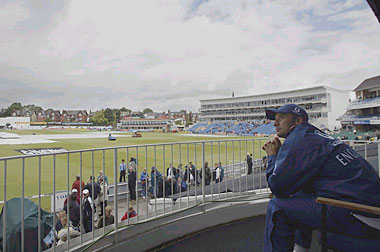 England captain Nasser Hussain watches the rain clouds on the eve of England's game against Sri Lanka in the NatWest Series at Headingley.