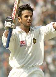 The argument against this will be that the scenario is entirely unrealistic - at least, as far as the Indian team is concerned. Why, exactly? Break that up into bite sized pieces - is it unrealistic, on the kind of track in use here, to expect a team comprising Dravid, Sachin, Ganguly and Laxman - repeatedly touted as among the top batsmen in the world -- to bat 90 overs for 360 runs? A further 60 overs for 240 runs (Remember that even with Dravid snowballing, 130 runs came off just 36 overs)?