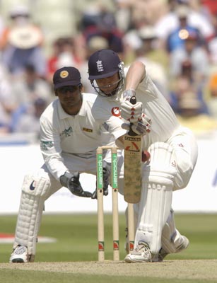 Matthew Hoggard in action during his unbeaten innings of 17 off 94 balls.