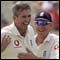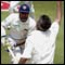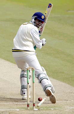 Marvan Atapattu is bowled out by Matthew Hoggard for 56.