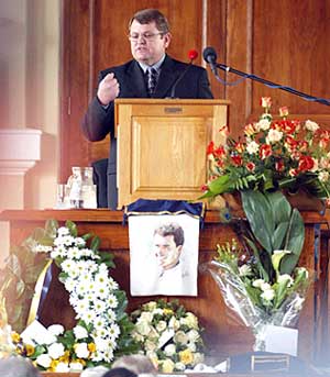 Pastor Dave Hooper from the Patria Bible Church in George leads the mourners during former South African cricket captain Hansie Cronje's funeral service.