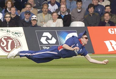 James Kirtley plucked out the most unbelievable catch of Sourav Ganguly at the long-on fence.