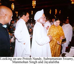 I was obviously in the wrong place at the wrong time for the wrong reason. But I wasn't alone in that. Keeping me company were the teeming multitudes of the Delhi media corps. They were there in all their (dubious) glory, armed with their boom-mikes and cameras and lights and cellphones and bandanas and alcohol breath and rude laughter. They circled the convention centre of the Ashoka Hotel like hounds on a blood trail...or worse. The occasion was a tea-party hosted by Subramanian Swamy to felicitate Jayalalitha, the Supreme Human Being of the AIADMK. At its best this seemed to me like a good PR exercise, and at its worst, an attempt to cause political mischief.