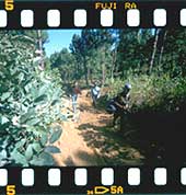 And tonight the password is 'Topi'UP at 0530 hours IST. We brush our teeth. After a quick change of clothes, we are off to another house to avoid the prying eyes of the villagers. A meal is being prepared. All of us go down to the river for our morning ablutions, shivering in the cold. The water is ice-cold but refreshing. At 0830 hours we have our breakfast of rice and board our "luxury coach". The Shaktiman is now stacked with hay to make us comfortable! Within 20 minutes, the semblance of road that existed vanishes. We are now going through a river -- through a river, mind you, not by its side. The driver is least bothered about the pebbles and rocks on the riverbed or the steep inclines that he has to climb at times. All we can do is marvel at his skill and the Shaktiman's power. The manufacturers have not correctly gauged its capacity, I tell myself. We halt after six torturous hours. Chairen hands us over to another platoon, led by a tough but smiling corporal, Sajong. How much longer, we ask. "Oh, just another hour," he replies.