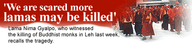 "I don't think the militants liked the demand for Union territory status made by the Ladakh Buddhist Association. The Gujjars (Bakarwals) had a camp near the Gompa, but the next morning the camp was empty and the Gujjars had gone. They are trying to now give the impression that it was a tussle between the Bakarwals and the lamas, but essentially the killings were the handiwork of ISI-backed militants. We are a peace-loving people and do not involve ourselves in activities that lead to bloodshed. We are scared that the militants might strike again and kill more lamas."