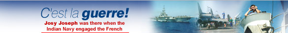 We were aboard Foch for almost a day, before moving to an Indian frigate for the next 48 hours. Life on board the naval carrier was as interesting as the strikes and fabulous mid-sea actions. Life is a curious mix here, a church to nuclear weapons, wine and cheese, and roaring fighters -- all within a few hundred yards.