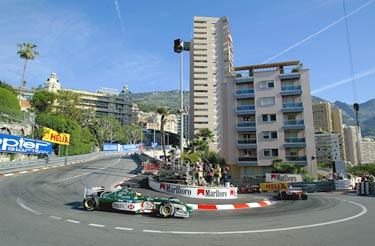 Pedro De La Rosa of Spain driving the Jaguar during the qualifying session at the 2002 Monaco F1 Grand Prix at Monte Carlo.