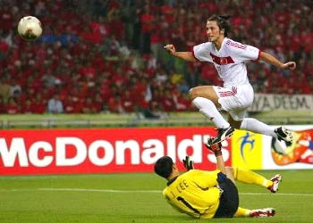 Mansiz, who started in the first 11 for the first time in the finals, capitalises on a superb touch from Sukur to score Turkey's second goal.
