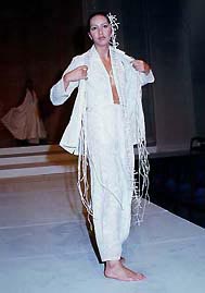 Aki selected the finest grain khadi in its natural hue. It was then washed, cured and crushed. The result? A mousse-like effect where certain areas of the fabric were more densely crinkled than others.