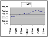 Thanks to a rising market in the early part of 2000, the NAV of the fund had crosses the Rs 400-barrier on February 2. The fund has aggressively restructured the portfolio in favour of the fancied infotech, communication and entertainment (ICE) stocks in the last one year. This gave a major boost to the NAV, which gained a whopping 97 per cent to move up from Rs 218 on May 5, 1999 and touched a high of Rs 430 in February this year. However, the sharp sell-off in ICE stocks since March has pulled down the NAV by 17 per cent from its February high though the fund has managed to outperform the Sensex. The 30-stock benchmark has lost around 30 per cent in the same period. The outperformance by the fund reflects that the fund manager was able to liquidate a part of the portfolio before the selling pressure gained momentum. And though the fund has outperformed the benchmark by a healthy 13 per cent, it will provide little solace to the fund management since it is at the mercy of the market to shore up the NAV to Rs 400. The units of BoI Double Square Plus are listed on the Bombay Stock Exchange. The units of the scheme are again trading at a premium to the NAV after the price had slipped below the NAV when the latter was hovering around the Rs 400 mark. On May 25, unit of BoI Double Square Plus closed at Rs 379 on the BSE, which translates into a premium of 5.73 per cent to the NAV. If an investor were to buy the units from the market at the current price of Rs 379, he will gain Rs 21 or 5.54 per cent three months down the line when the scheme comes up for redemption. This translates into a simple annualised return of 22.16 per cent. BoI AMC also offers repurchase in the scheme and the units are currently being bought back at a price of Rs 300. However, the repurchase is available only for original allottees and investors, who have bought units from the market, will have to wait till redemption. Source: Value Research |