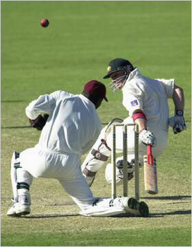 The Battle is on...Jacobs failed in his bid to take the Windies to 400. And the Aussies took complete advantage to get off to a blazing start. The wicket just seems to be perfect for batting.David Pillinger/ALLSPORT |
