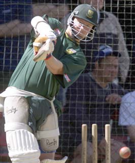 Lance Klusener taking some batting pracice during the nets session.