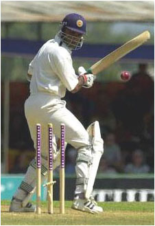 Marvan Attapattu looks behind to find his stumps shattered by one from Gough. Attapattu made 16.