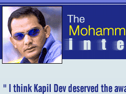 Returning Kapil Dev's compliment describing him as a 'gem of a cricketer,' Azharuddin said of the Wisden award, "I think Kapil Dev deserved it more than anyone else. I think he has played on very flat wickets and to get to that 430 mark and one time world record holder – and then 5,000 runs -- a brilliant fielder, good runner between the wickets, I think it is very appropriate. "He also has tremendous fitness and never missed a game." Azharuddin said many of his cricketing colleagues have kept in touch with him, although he let slip that does not include members of the present Test side. "A lot of people have kept in touch with me, maybe not from the present team, but I have a lot of well wishers like Kapil." "I speak to a lot of players, they call me on and off. But during the difficult time I hardly had anyone talking to me. "It sounds sweet when after a long time people talk good about you, especially when you have done a lot for the country and played with distinction. It's good, it's a good feeling." Supremely pragmatic, he says he does not miss being part of the team " because I have to live with what happened. But definitely I still had three or four years to go. I was still fit and scoring runs, but anyway hopefully things will change." "Mentally, I am very strong, physically I am very strong. I think that keeps me going, that keeps me strong all the time." He refused to discuss members of the current Indian team, saying it was uncalled for him to comment on individual players, including those he has played with in the past. Asked to comment on media reports that his professional troubles have affected his marriage, he replied, "That's all rubbish. Whoever is doing that or saying that they must be having the problems. Must be affecting them, not me." Azharuddin was optimistic about the company he started, Events, although he admitted the market was a bit low. "Hopefully it will pick up. It can do anything like fashions shows, concerts, we've done a couple of shows." He was also upbeat about the cricketing prospects of his young sons, Asad, 12, and Ayaz, 10. "They are both good all round players. I don't want to put any pressure on them, if they are good, they will play."