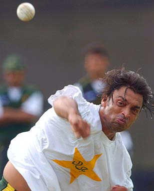 Shoaib Akhtar of the Pakistan cricket team in action during training at the Allan Border Field in Brisbane, Australia. The Pakistan team are in Brisbane to train in preparation for the Tower Super Challenge one day cricket series against Australia.
