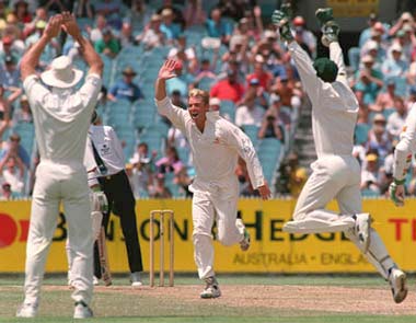 Skipper Allan Border introduced Warne to a huge roar from the stands in the 18th over of the innings. Ian Chappell, sitting in the Channel Nine commentary box, rang Terry Jenner, Warne's coach, and turning up the effects microphone said, `Listen to this mate. And this for a leg spinner.'