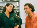 Well, here we are at Convent Villa where Kundan Shah is directing his third love story Hum To Mohabbat Karega -- that's what's the soft focus cameras there are supposed to take in. Two of his films released earlier, Jaane Bhi Do Yaaron and Kabhi Haan Kabhi Naa, were well received by the critics, though they made no impact on the box office. But then Kundan is all prepared to meet commercial demands now. Even if it means he has to work in this love-suffused locale. Look at him more carefully and you notice the characteristic attention to detail hasn't been compromised. As Bobby and Karsima, who play the love birds, have discovered. "Boss, bay hatana. Saab ko poocho chai piyenga ya thanda," the PRO tells one of the unit hand while we fall into our chairs. One take. A second. A third. Bobby Deol must be exasperated, we think. But Kundan's demands are inexorable. Hereabouts, take till you drop appears to be the motto. So a unit hand knocks at a door which Bobby opens.