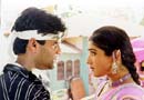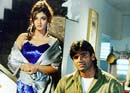 We are there for the shoot of Farooq Nadiadwala's Officer, starring Sunil Shetty and Raveena Tandon, and which is being directed by Naeem Sha. The gurkha sizes you up doubtfully as you saunter in, uncertain whether you just another voyeur. We see Sunil Shetty rush in and dive into the make-up room. His friends get in and begin chatting up with each other when the hero steps out for a moment. "Anna (Sunil) is going to USA soon. There is this Versace showroom in New York where the clothes are dirt cheap. You get it at one-tenth of the cost price. Why don't you get the guy's address? When Anna goes there, he will buy it from there for you." But Anna walks in and tells them off. "What a stupid idea. Do you know they are only rejects there? You want me to wear rejects for my films??" Then more curtly, "You'd better get those clothes Mana ( his wife) ordered from that shop." After his 'friends' hurry off, Sunil turns to us, exchanges pleasantries, and gets to describing the character he plays. "I have a different role in this film, that of a special protection officer. It's not a role of a police officer nor that of a bodyguard; it is more like a member of a 'Z' category security team," he tells you. Just then, Raveena steps in, clad ravishingly in a white sari with a red border. A couple of trays are brought over to her. Raveena grabs two handfuls of the coloured powder thereon. Green in one hand, violet in the other. Another Holi scene, you sigh to yourself. She steps outside the door through which she's supposed to come in and smear the hero when action is called for. The music begins and Raveena steps in with alacrity. She apparently likes the scene a good deal. "Yaaa!" Raveena yells, shedding her amour propre, and smacks Sunil full with the powder that hangs in reluctant clouds around the unfortunate man before descending on and around him. Sunil, clad in a pale kurta pyjama to show the stuff off, is covered. Cut!