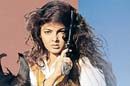Off the screen too, it was equally controversial, after heroine Mamta Kulkarni's accident during the horse-riding scenes which finally led to a battle with the director that ended in the former walking out... Finally, just when the picture, which is dedicated to Akira Kurosawa's Seven Samurai, seemed done, the director decided he needed a song with Urmila Matondkar put in to deliver some lacking oomph. That's the background we had in mind as we walked into Mehboob Studios, Bandra. The shooting floor quivers to the loud-playing lyrics of Meri patli kamar, meri tirchi nazar. And dancing to the music are the dance director and a lady assistant with a lot of character artists ignoring them and chatting in the small groups. Pretty Urmila, covered to the full by a rather faded cotton chunni, enters left. Her make-up and hair-do look like they are straight from a village -- there are a lot of tattoos in view and beads aplenty in the hair. The music stops, only to start again for the final shot. The dance director, still a little winded by all the exertion, tells her a few things the lady nods agreement. The make-up man rushes up as usual to prettify her further, the girl anxiously checks her costume jewellery in the mirror before tossing the chunni to her assistant. And then alone is she revealed in all her beauty.