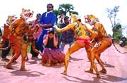 J B Chakravarthy and Maheshwari in Krishna Vamsi's Gulabi. Click for bigger pic!