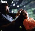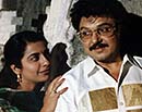 Which brings up the question -- what's new about another love story, in an industry that knows nothing else? Well, as the posters say, it is a "different love story" -- and surprise, surprise, when you sit back in the darkened cinema hall and the story unfolds before you, you realise that it really is different. Simply put, Amrutavarshini is the story of the love of a husband and wife -- and therein lies the difference, for if the filmy norm is for screen marriage to put the full stop to screen romance, then in this film, the love story actually kicks off after Suhasini Mani Rathnam (making a comeback after matrimony, motherhood and the odd foray as film/television director) and southside character actor Sharath Babu get married. The film focusses on the warm moments -- told with touching tenderness -- that can exist within the cocoon of conjugal life. Until, enter the thorn, in the form of Ramesh Arvind, playing Babu's good friend. Suhasini, in all innocence, develops a warm relationship with Arvind, and along the way gets an inkling that he is rather broody in the mind. Of course, women -- the celluloid variety, at least -- being rather naive creatures, she does not suspect that Arvind, who has lost his girlfriend to death's embrace, is now holding a flaming torch for her. Ramesh at one point decides to get out of the happy couple's life -- only for the husband and wife to invite him to share a brief holiday they are planning in the hills of Kodaikanal. Temptation finally gets the better of him, and Arvind kills Babu in what looks like an accident.