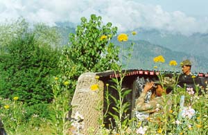 Yeh border ki zindagi hai," sighs Bilquees, one of the few educated inhabitants of this little Indian village on the Indo-Pak border in Jammu and Kashmir, "You just can't understand the trouble we have because of this firing." Spread out in naked isolation, eight kilometres downhill Chaukas, one of the most sensitive forward posts along the Line of Control, Urusa is the nearest village to the border on the Indian side. And, as such, the most vulnerable to cross border firings, an easy prey for even small arms. "Firing roz hota hai. Sabse bada problem wohi hai. Na sone ko detha hai, na kheti karne ko deta hai (Firing goes on all the time. That's our major trouble. They don't let us sleep, nor farm)," says Mohammad Anwar, "They don't let us live in peace -- they fire when they feel like, without differentiating between day or night." Anwar, who talks with the experience of one who has handled many media teams -- Time magazine correspondents were there only a couple of days before, and teams of CNN and The New York Times were to follow the next day -- is blissfully unaware of India and Pakistan's newfound nuclear status. He knows that something important happened on May 11 and 13, after which, he says, for the next couple of days, there was increased firing. "We don't venture out of houses when the firing is on," Anwar continues, "Once we were returning with a body from Baramullah ( the nearest town after Uri) when they started heavy artillery. Shells were bursting all over the road - they were trying to get the bridge -- and we had to leave the corpse by the road side and take cover. It lay there for nearly two hours before we could retrieve it!" Urusa is the only village along the LoC in the Kashmir valley which is yet to shift behind Indian lines. Cut off from the rest of the world -- there are no buses connecting it to Uri or Baramullah anymore -- it has around 250 inhabitants in 25 houses, and boasts of a primary school, a mosque, an anganwadi and nothing else. There has been no panchayat election here since the start of militancy, and the villagers are dependent on the army -- the men manning Chaukas and its base camp, to be precise -- for food as well as protection. "Yeh dekho," says Bilquees, who doubles as the primary school teacher, inviting you into her bare two- room fiefdom, "There are 45 children here. There is no chair, the floor is a mess... When the firing starts, which is an everyday occurrence, the children run out to hide. In such circumstances, how much can they study?" The nearest secondary school is three kilometres away, Bilquees continues, and has to be walked to. Not long ago, public buses used to ply till the Weak bridge, hardly a kilometre away -- but now, thanks to the increased artillery fire in the area, there are no buses. "Hamare bacchon ko paidal school jaana padta hai, hamko bhi door jana padta hai ration laane (Our children have to walk to the school, we have to walk to get our rations)," she says, "If someone falls ill we can't even take him to the hospital if the firing is on..." Up at Chaukas, on nights when things are quiet, when not even rifle shots punctuate the peace which surrounds it, Major Y starts worrying. Peace, especially absolute peace like what he was enjoying now, he knows, is in many cases a precursor to acts of war.