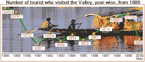 Agrees Leena Borkar, another tourist from Pune: "The presence of military men makes this different from other tourist places. But in Pune, I am so used to seeing army people that I find no difference." And what about militancy? "Yes, somewhere in the back of my mind, there is fear. My in-laws in Pune are worried too. So I call them every evening," she adds. Interestingly, the Jammu & Kashmir government is making all efforts to woo the tourists back. They are working on some kind of alliance with Indian Airlines and Jet Airways to offer discounts. But nothing concrete has emergdd as the airlines say their flights are running at almost 80 per cent capacity. Says M Ashraf, director general, department of tourism, J&K, "The meetings with the airlines have not been fruitful as they say that the Srinagar route gives them good business. So there is no way they will offer tourist discounts." Apart from that the government is taking local travel agents and hoteliers to different parts of country to participate in tourism exhibitions. "We have also released advertisements in national newspapers offering discounted travel to J&K," adds Ashraf. "Statistics show that most tourists come from Gujarat, Maharashtra and West Bengal," he adds. In the last ten years there have been only three or four incidents of attacks on tourists, say officials. The worst was the kidnapping of five foreign nationals by the Al-Faran group. Ashraf claims that the media factually report the situation in the valley. "Even if there is a blast in Jammu, the byline of reporters in any newspaper is from Srinagar. This happens because most journalists stay in Srinagar," Though it seems that Kashmir's economy is in turmoil, the locals are not that grim. According to them, a majority of the population depends on agriculture. Then comes horticulture, handicrafts and finally tourism. "Tourism has the potential to become the number one source of revenue. But unfortunately, it is lagging behind because of militancy," adds Ashraf. Banks in the state are also pitching in by offering locals soft loans to start businesses. They have already distributed nearly Rs 250 million in the last two years. Says Fayaz Ahmed, a houseboat owner, "There are nearly 1,200 houseboats in Srinagar. And everyone is losing money. There seems no end to our grief." Business in the 70 hotels, including three five-star hotels, has also fallen. Film shootings, another source of income, too had stopped for a long time. Boney Kapoor recently shot Pukar in the valley. Now Vidhu Vinod Chopra is shooting Mission Kashmir with Bollywood's latest heartthrob Hrithik Roshan. Things may be looking up, but a single explosion brings back dreaded memories of militancy. And it means another long wait for people like Ghulam Rasool. |
