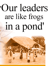 Ironically, as markets all over India open up, politicians in Meghalaya are trapped by their jargon and cannot advocate that the state open up, modernise, compete and grow. Says Nongkynrih: "Look at what bright chief ministers like Digvijay Singh and Chandrababu Naidu are doing for their states. But our leaders do not travel and have become like frogs in a pond."