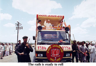 captures the heat and dust of L K Advani's Swarna Jayanti Rath Yatra. A photographer's perspective to complement Syed Firdaus Ashraf's