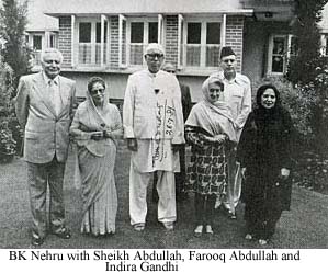 B K Nehru, Indira Gandhi's cousin, was governor of Jammu and Kashmir when the prime minister decided that she wanted to get rid of Chief Minister Farooq Abdullah in the autumn of 1983. She disliked Abdullah so much that she even supported the chief minister's pro-Pakistan brother-in-law G M Shah in