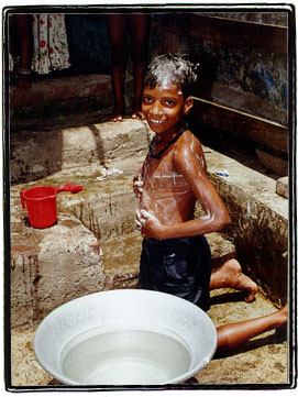 The young lad enjoys his open air bath