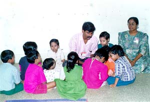 Muthupandiyan with children at the CHES ashram
