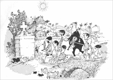 Whenever the monsoon is late, and the peasant fear for their crops it's always the rain-giving St Anthony who is taken for a 'ride' around the village streets to the accompaniment of songs and hymns in his praise, provided by Mestre Santana and his choir boys.